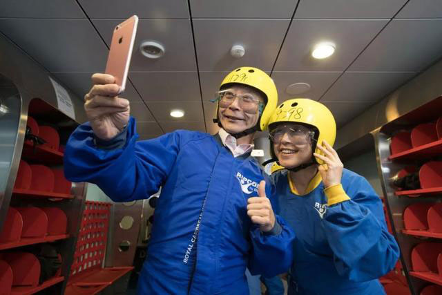 作为量子船系首创的甲板跳伞,每一天都能收获满满,热爱新鲜与挑战的人非常多,毕竟,只要年满3周岁的游客,就可以来挑战它!年龄没有上限,爷爷奶奶也能够玩得不亦乐乎,摆脱引力,感受飞翔的极限乐趣。