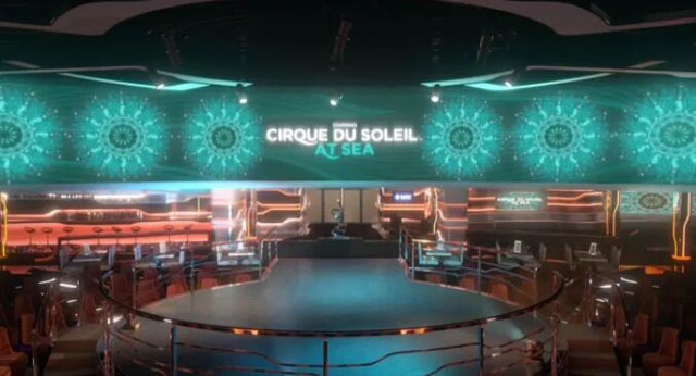 太阳马戏为地中海邮轮量身定制独家剧目,算是开创了太阳马戏海上表演的先河。荣耀号斥资2000万欧元专门建了一个360°旋转木马剧场,观众环绕舞台而坐,尽享身临其境的视听盛宴。长达40米的LED屏幕让观众们能完全地融入沉浸式表演里。
