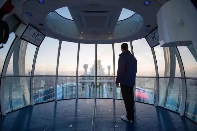 大名鼎鼎的北极星,是船上的制高点。其设计受到了英国伦敦眼的启发,是工程学上的一个奇迹。360度旋转的吊杆手臂,将乘坐在宝石形的玻璃太空舱的游客送往离海平面88.6米的全新高度。游客能够通过全透明玻璃舱,从高空俯瞰360度的壮阔海景。那么,北极星还有多少我们不知道的故事呢?