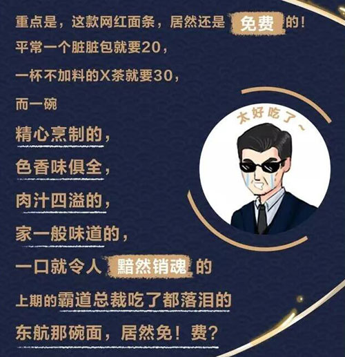“东航那碗面”从东方航空贵宾休息室里扬名后,并没有停下前进的步伐,除了给头等舱商务舱客人带来尊崇的体验,第一家实体店也在在上海徐汇滨江地区的云锦天地里正式开业了,价格从三十到一百八十不等,前去打卡“网红”面的人络绎不绝。由于消费者反馈还不错,东航那碗面伴随南极科考船“雪龙号”居然奔向极地。