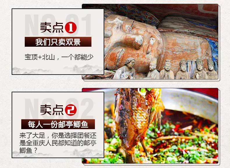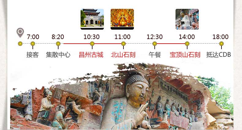 重庆到大足石刻旅游费用不含1、不含大足宝顶山石刻往返电瓶车22元/人(自愿乘坐);
