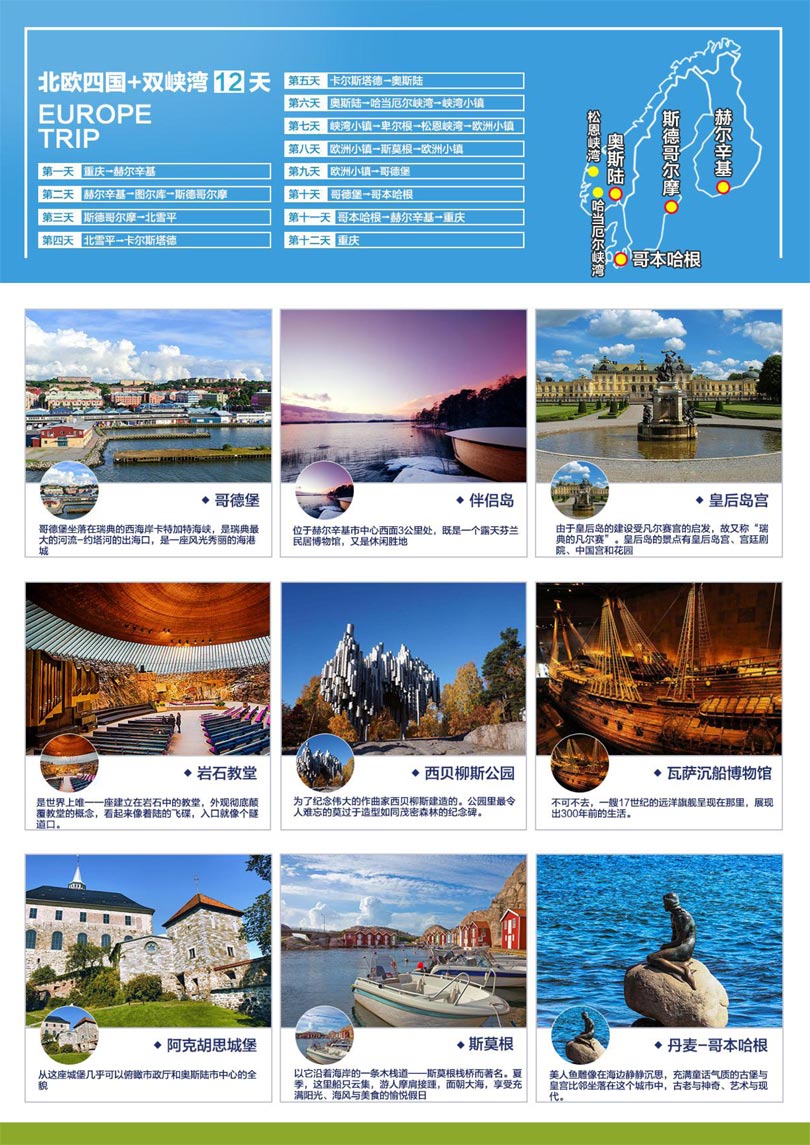 | 丹麦 | 哈姆雷特城堡 (约 1 小时) | 当年莎士比亚就是以该城堡为原型创作的《哈姆雷特》,童话之父安徒生曾称赫尔辛格为“丹麦最美丽的一角”,实际上它不仅是丹麦历史最悠久的小城之一,也是扼守海峡的要塞和丹麦皇家权力威严的象征。 | 预订费+门票+往返交通费+停车费+司机服务费 45 欧元 |